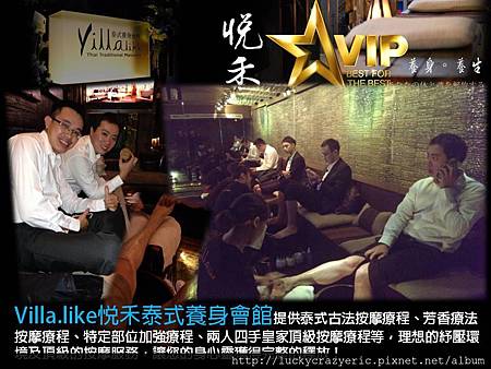 Villa.like悅禾泰式養身會館提供泰式古法按摩療程、芳香療法按摩療程、特定部位加強療程、兩人四手皇家頂級按摩療程等,理想的紓壓環境及頂級的按摩服務,讓您的身心靈獲得完整的釋放!